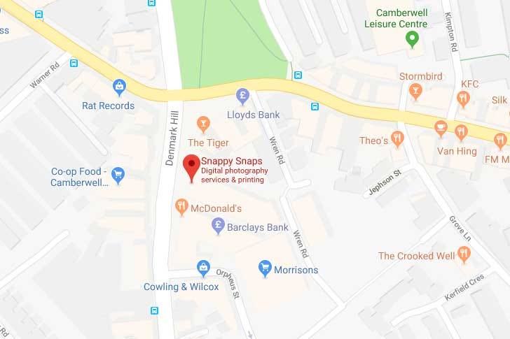 Our Snappy Snaps Camberwell store is situated just across the road from Camberwell Green on the junction of Denmark Hill, Camberwell Road and New Road, and Peckham Road. We are within walking distance of Denmark Hill Overground and National Rail Station and even closer to the King's College Hospital. Paid parking is ample in the surrounding streets, and the Morrisons car park behind our convenient shopping arcade offers short term free parking to customers. There are plenty of coffee shops in our Parade, but our photo printing, instant passport photos, ID and Visa services are all instant, so we can make your order while you wait!